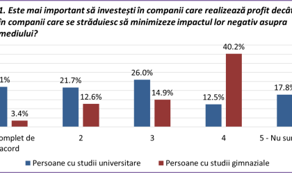 Datele din studiul mai sus amintit, în fapt răspunsurile celor chestionați, arată că românii nu gândesc deloc în spiritul ESG. Iată, mai jos, principalele rezultate. Menționăm, încă o dată, că este vorba despre un eșantion de 1.055 de persoane considerat relevant statistic.