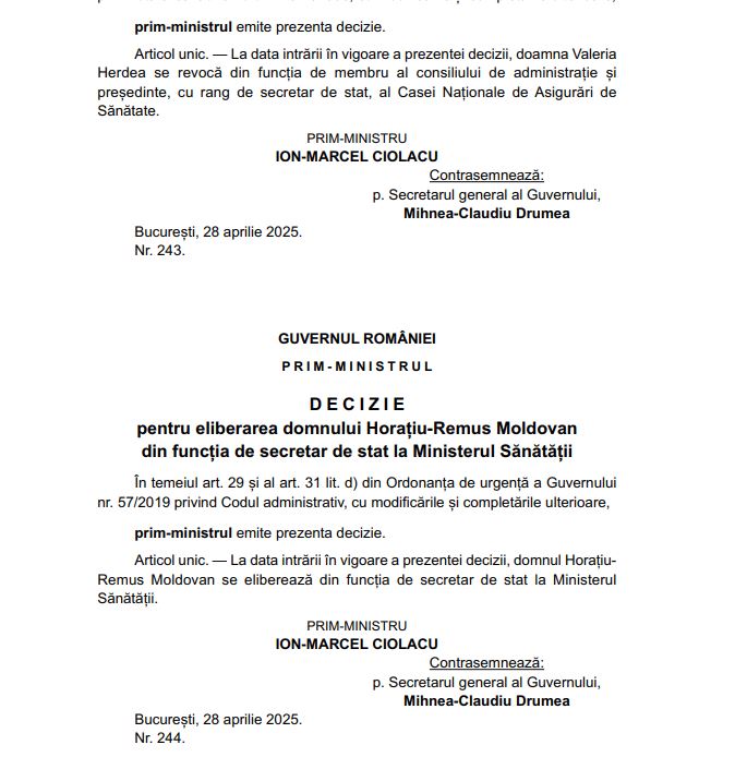 Iată decizia guvernului publicată în Monitorul Oficial luni: