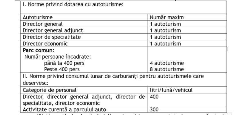 Art. XXXI (1) Cheltuielile privind dotarea cu autoturisme și consumul lunar de carburanți pentru regiile autonome, companiile naționale/societățile naționale/societățile comerciale cu capital deținut majoritar/integral de Statul Român sau de unitățile administrativ teritoriale se stabilesc după cum urmează: