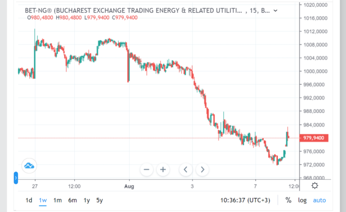 Indicele companiilor din sectorul energetic BET-NG a înregistrat o scădere de 2,67%, la 978,06 puncte, în săptămâna încheiată la 4 august.