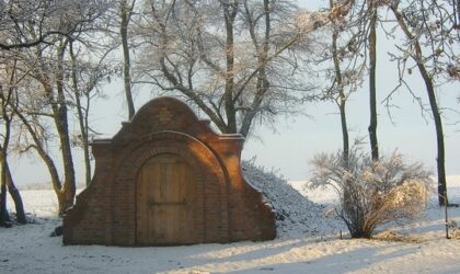 Construcţia din lemn are o lucrătură rustică şi elegantă. Anexa este dotată cu uşi duble încadrate în cărămidă.