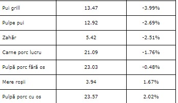 În ceea ce privește carnea de pui și porc, aceasta s-a ieftinit în august față de luna iunie, excepție făcând pulpa de porc cu os al cărei preț a crescut ușor, cu 2%.