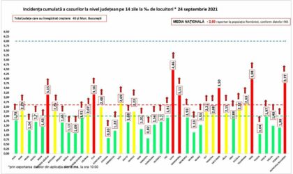Media naţională a ratei de infectare este de 2,60 la mia de locuitori.