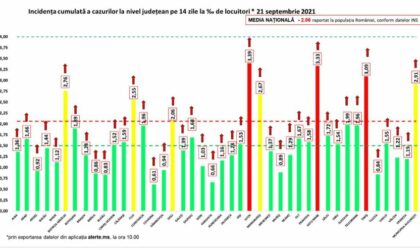 În intervalul 20.09.2021 (10:00) – 21.09.2021 (10:00) au fost raportate de către INSP 129 de decese (57 bărbați și 72 femei), ale unor pacienți infectați cu noul coronavirus, internați în spitalele din Alba, Arad, Argeș, Bacău, Bihor, Bistrița-Năsăud, Botoșani, Brăila, Caraș-Severin, Călărași, Cluj, Constanța, Dâmbovița, Dolj, Galați, Giurgiu, Gorj, Iași, Ilfov, Maramureș, Mehedinți, Mureș, Neamț, Olt, Prahova, Satu Mare, Sălaj, Sibiu, Suceava, Teleorman, Timiș, Tulcea, Vaslui, Vâlcea și Municipiul București.