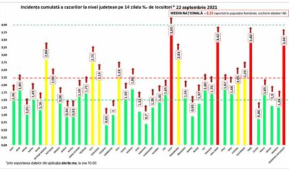 În intervalul 21.09.2021 (10:00) – 22.09.2021 (10:00) au fost raportate de către INSP 130 de decese (55 bărbați și 75 femei), ale unor pacienți infectați cu noul coronavirus, internați în spitalele din Alba, Arad, Argeș, Bacău, Bihor, Bistrița-Năsăud, Botoșani, Brăila, Brașov, Buzău, Caraș-Severin, Călărași, Cluj, Constanța, Dâmbovița, Dolj, Galați, Giurgiu, Gorj, Harghita, Hunedoara, Ialomița, Iași, Ilfov, Maramureș, Mehedinți, Neamț, Olt, Prahova, Satu Mare, Sibiu, Suceava, Teleorman, Tulcea, Vaslui, Vâlcea, Vrancea și Municipiul București.