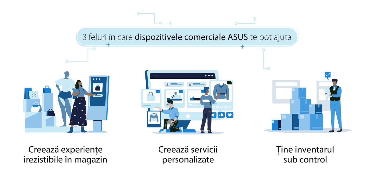 Comerțul orientat către client este noua normalitate și necesită o abordare flexibilă. Dispozitivele ASUS sunt proiectate pentru a funcționa oriunde, în orice situație, de la magazinul fizic până la depozit, incluzând o putere de calcul ridicată într-o carcasă ușoară, dar foarte robustă. În plus, atunci când sunt însoțite de soluții digitale avansate, acest tip de investiții devin rapid rentabile și fiecare comerciant își poate pregăti strategia pentru a deveni un jucător matur din punct de vedere digital într-un domeniu în continuă schimbare.