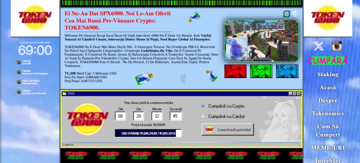 Pe lângă funcționalitatea de staking, TOKEN6900 capitalizează pe aceași filozofie „frenezie alimentată de meme-uri” care a consacrat SPX6900: o comunitate extrem de activă, entuziastă și în plină expansiune. Cu un hard cap limitat la doar 5 milioane USD în presale, fereastra de oportunitate pentru a cumpăra la un preț redus se îngustează rapid.