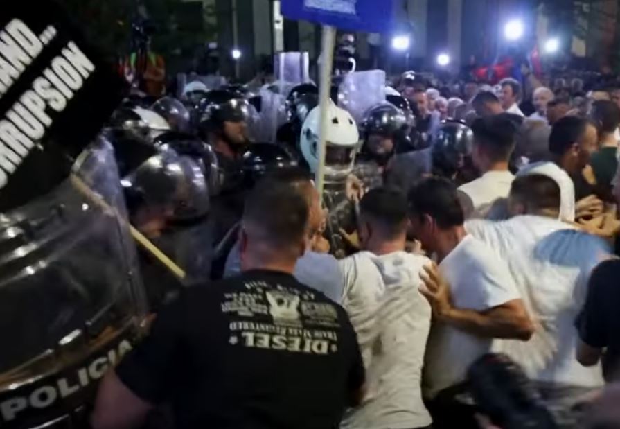 Ciocnirile au izbucnit când protestatarii, dintre care unii au aruncat cu cocteiluri Molotov, au încercat să rupă cordonul de poliţie care păzea un imobil guvernamental, scrie Agerpres.