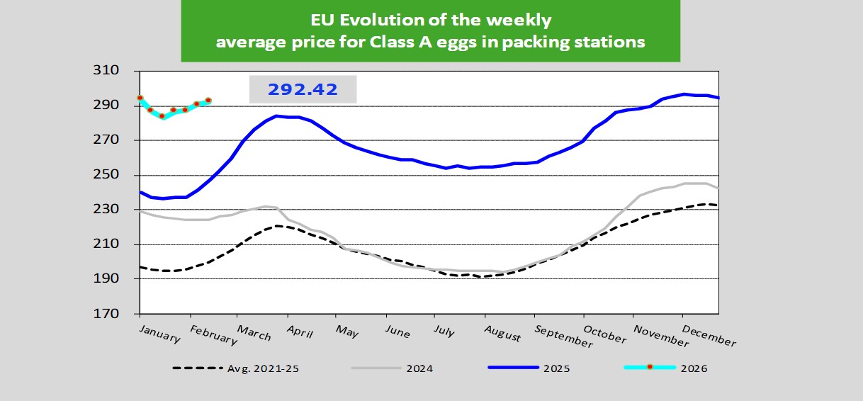 Mai exact, în săptămâna ce a început cu 5 ianuarie, producătorii vindeau cu o medie de 220,5 euro suta de kilograme, cu 0,3% mai ieftin decât săptămâna anterioară. Trendul nu s-a menținut însă, astfel că în săptămâna ce a început cu 9 februarie suta de kilograme a ajuns, în medie, la 225,1 euro, fiind cu 0,2% mai ieftină decât cu o săptămâna înainte și cu 1% sub prețul de acum o lună. Față de perioada similară a anului trecut, ouăle pleacă de la poarta fermei românești mai scumpe cu 10,4%