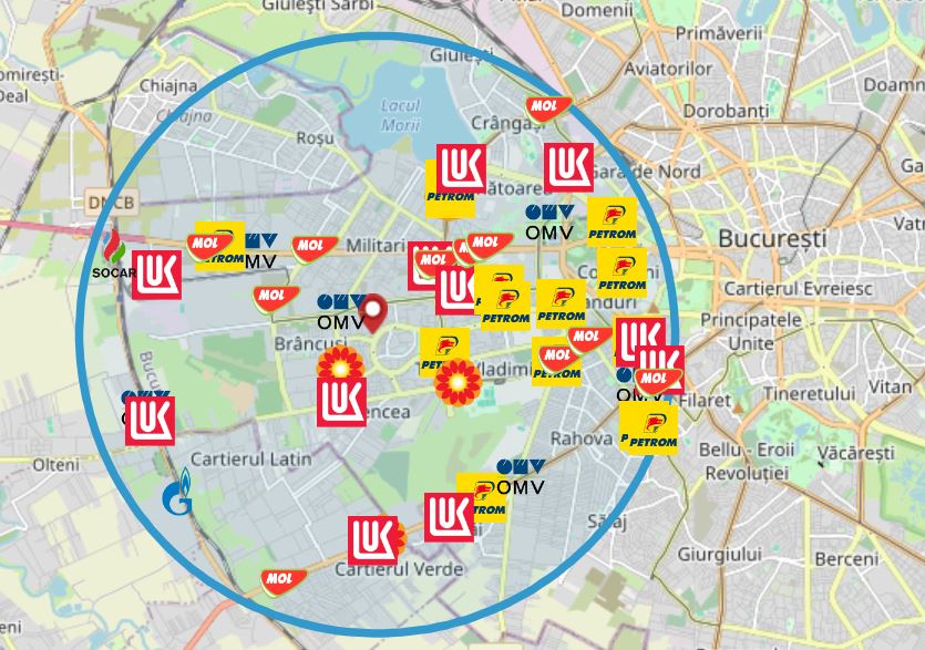 Pentru comparația prețurilor de mai jos am folosit aplicația Monitorul Prețurilor a Consiliului Concurenței și am ales jumătatea de vest a Bucureștiului, în care fiecare lanț mare – Petrom, Rompetrol, Lukoil, OMV, MOL și SOCAR – au cel puțin o stație.