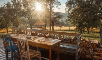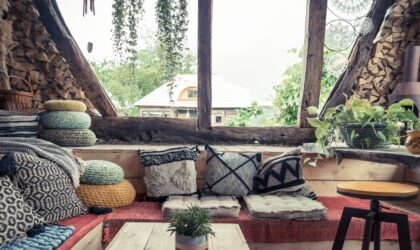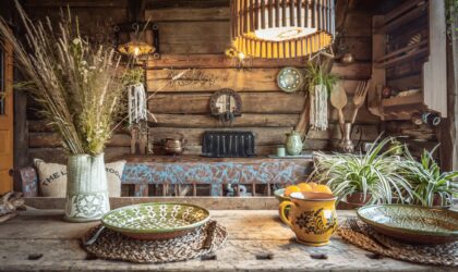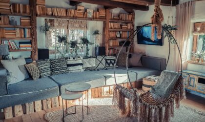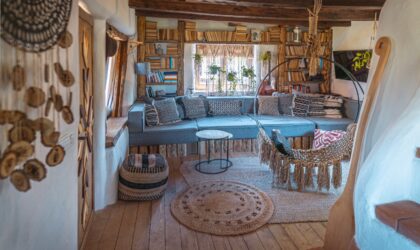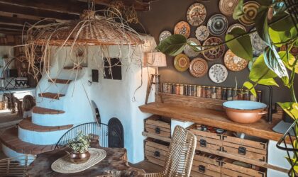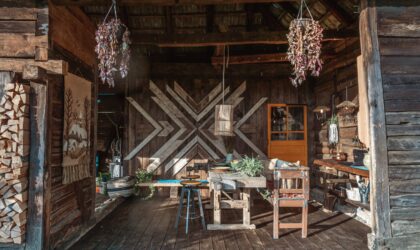 Spațiul interior a fost amenajat astfel încât să spună o poveste, să reflecte pasiunea pentru ambianța rustică, dar cu accente boho și influențe contemporane. Elementele specifice arhitecturii românești, cum sunt grinzile de lemn, soba cu lemne și șura au fost integrate într-un concept de design modern care să reflecte nevoile actuale.