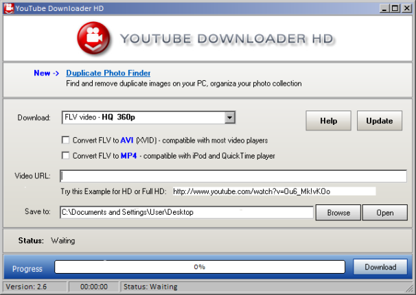 Pentru început este necesar să instalați programul gratuit YouTube Downloader HD. Trebuie să rețineți însă că Downloader HD dispune de un număr limitat de formate de ieșire și nu poate fi utilizat pentru a descărca clipuri și de pe alte site-uri care oferă acest serviciu.