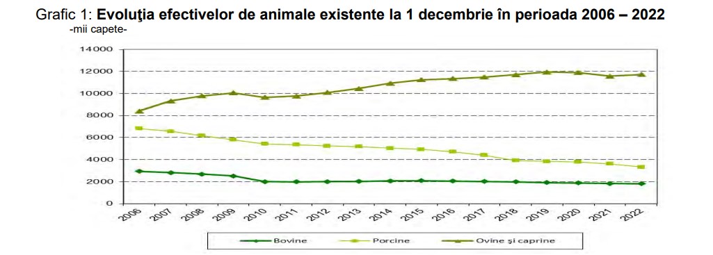 Trendul nu este însă același și la celelalte categorii de animale unde au existat fluctuații, iar în majoritatea anilor analizați s-au raportat creșteri.