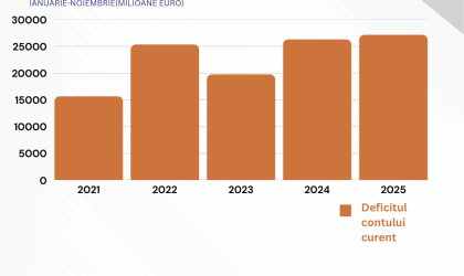 Deficitul contului curent al balanței de plăți a României s-a ridicat la 27,1 4 miliarde de euro, în primele 11 luni ale lui 2025, cu puțin peste 1 miliard de euro mai mult decât în perioada similară a lui 2024, arată Banca Națională a României (BNR). Mai simplu spus, din țară au ieșit cu 27 de miliarde de euro mai mult decât au intrat. Ca de obicei, cel mai mare deficit vine din comerțul cu bunuri, de la mâncare, electrocasnice și haine la utilaje, acolo unde am importat cu peste 18,4 miliarde de euro mai mult decât am exportat. Plusul substanțial, peste 10 miliarde de euro, vine din servicii, mai precis din transporturi, loan (textile mai ales) și servicii IT&C. Totuși, comparativ cu 2024 și chiar cu oricare dintre ultimii 5 ani, imaginea nu arată atât de rău.