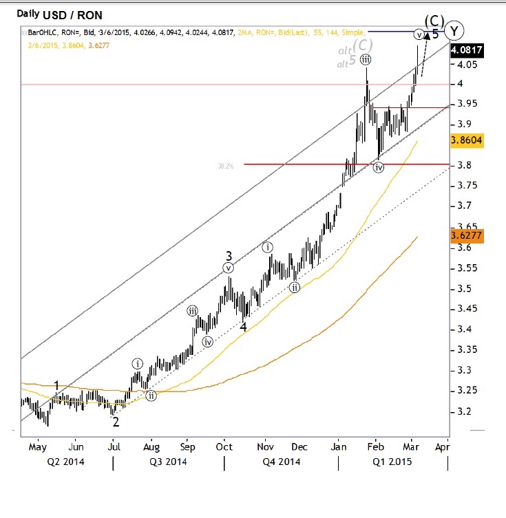 Dolarul are acum toată libertatea să ajungă la 4,25 de lei şi apoi oricât de sus, potrivit analiştilor tehnici de la casa de brokeraj BT Securities.