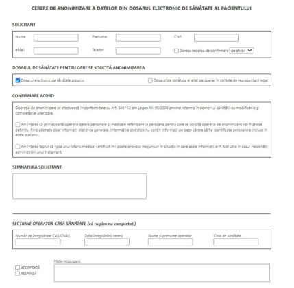 Procedaţi în mod similar dacă vreţi să reveniţi din anonimizare. Cererea de revenire din anonimizare poate fi accesată la acest link.