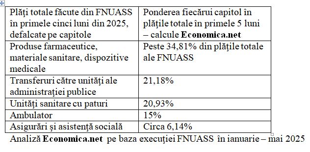 Pentru serviciile medicale acordate în spitale pacienţilor în cadrul sistemului asigurărilor sociale de sănătate, am plătit 7 miliarde de lei din FNUASS în perioada ianuarie – mai 2025, cu 2% mai mult decât în aceeaşi perioadă a anului 2024, arată analiza Economica.net.