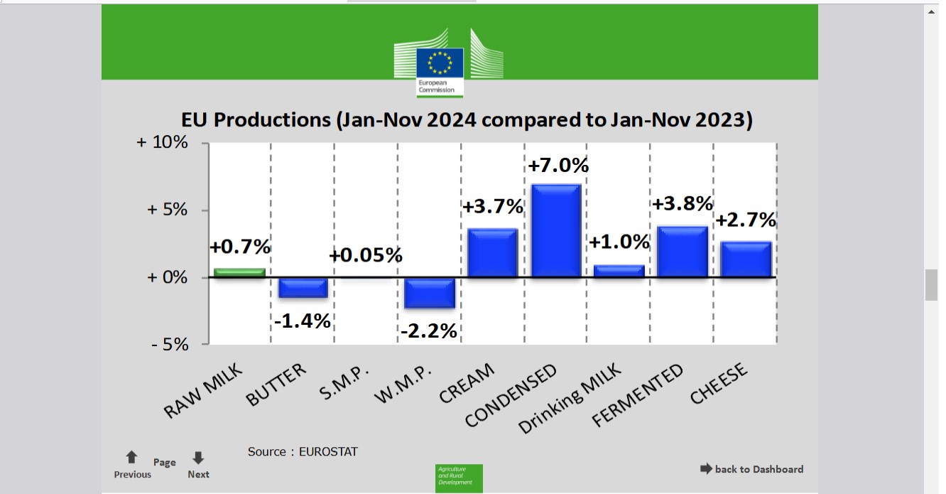 De asemenra, brânzeturile au crescut cu 7,4%, până la peste 109.600 de tone, smântâna cu 6,7%, laptele acidulat cu 7,5% și laptele de consum cu 4,5%, până la aproximativ 375.000 de tone.
