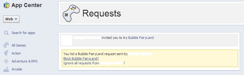 2. Dacă alegeţi varianta „Ignore/Ignoraţi”, atunci nu veţi mai primi nici o invitaţie la o aplicaţie de la persoana respectivă.