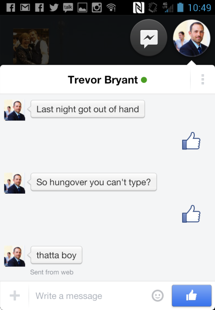 Butonul de like îl înlocuieşte pe cel de send din chat, colorat în gri atunci când utilizatorul nu tastează nimic.