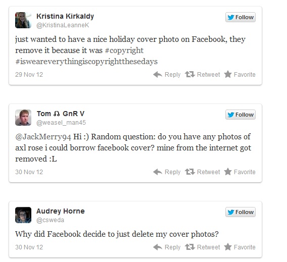 Motivul exact alt eliminării anumitor fotografii nu a fost explicat de către oficialii Facebook. Potrivit Mashable, ar putea fi vorba de drepturile de autor, dar si de etichetarea acestora ca „publicitare”.