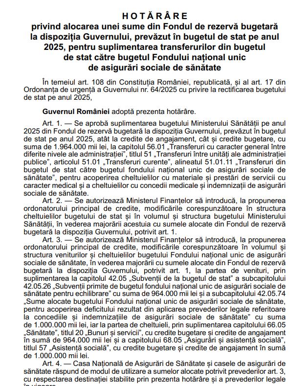Hotărârea de Guvern nr. 1101, care vizează suplimentarea FNUASS, a fost publicată în Monitorul Oficial al României nr. 1175 din 18 decembrie 2025, şi poate fi citită în captura făcută de Economica.net aici: