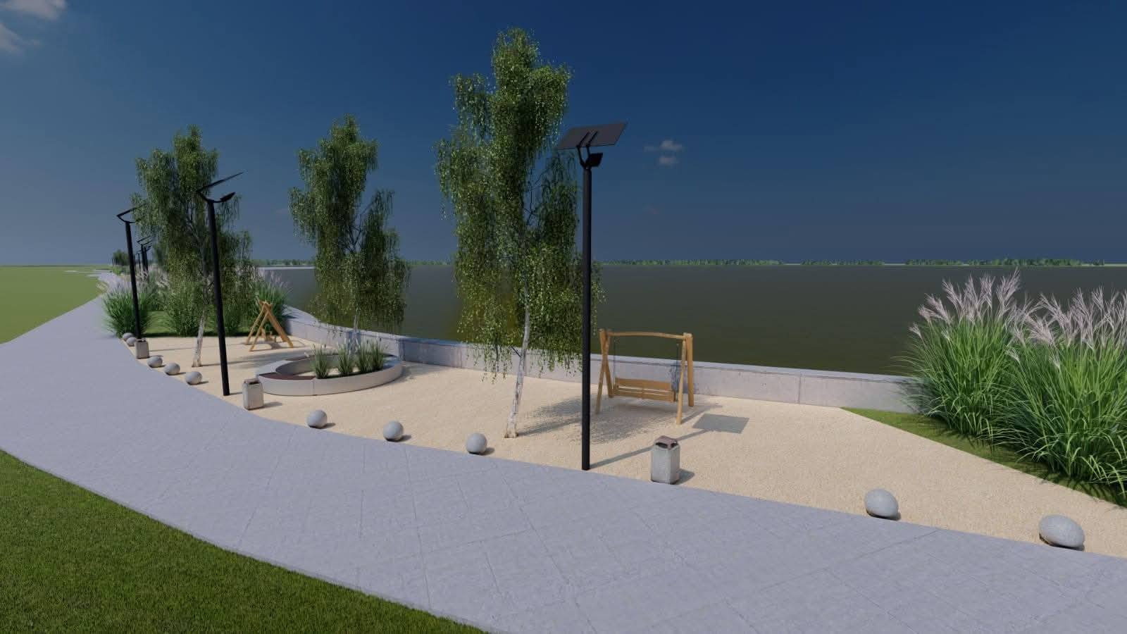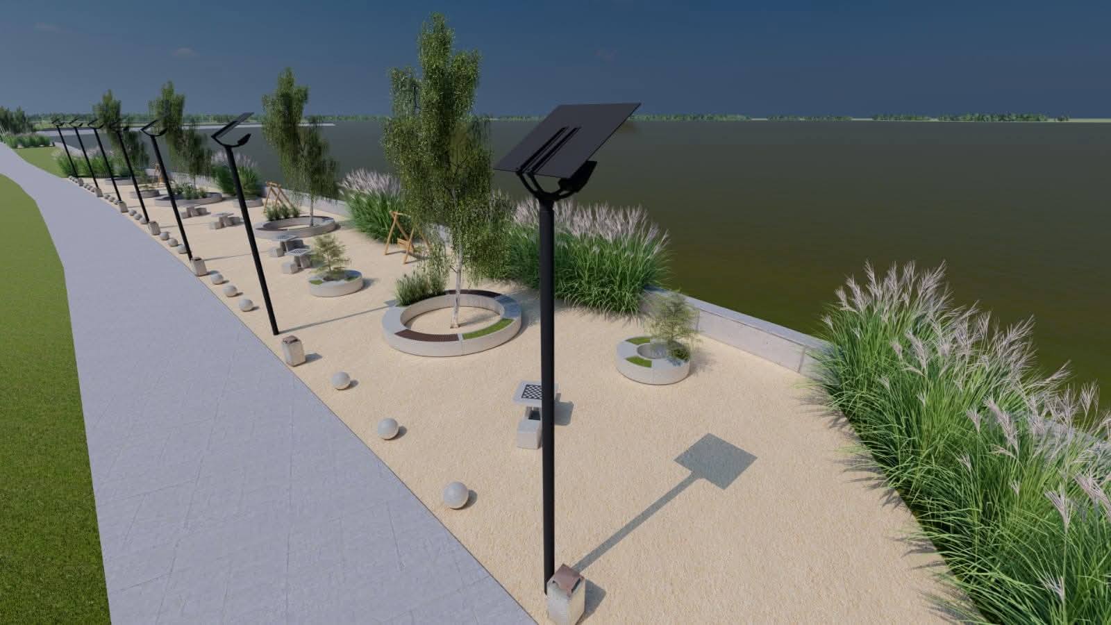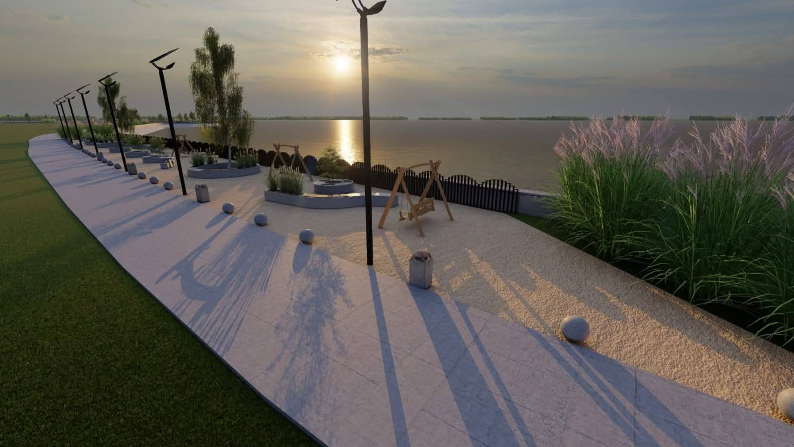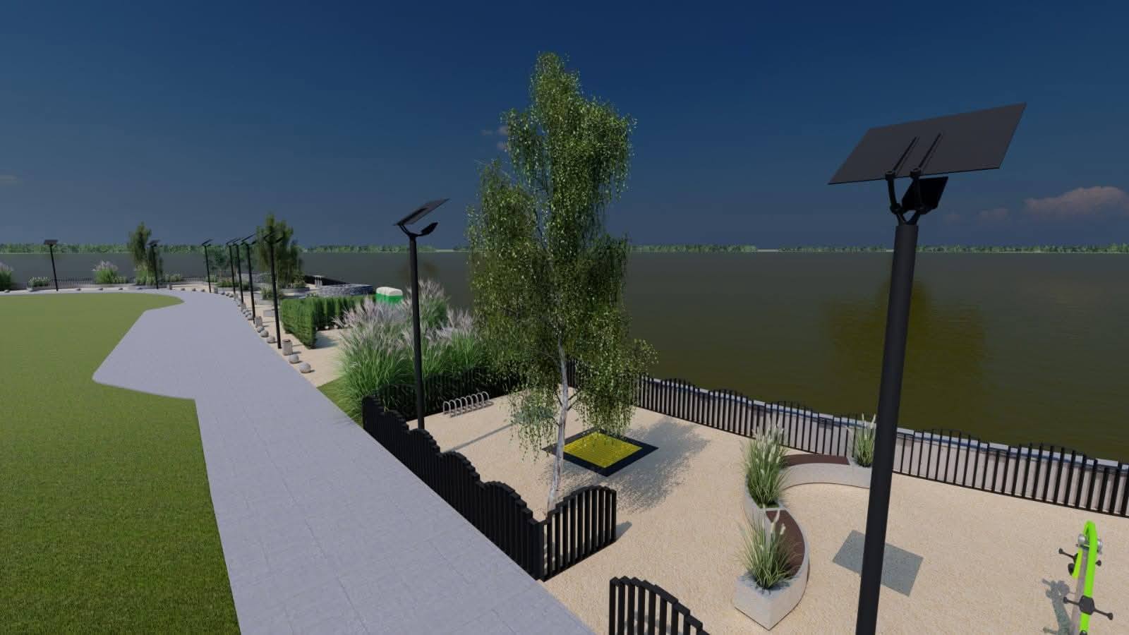 👉 1,3 kilometri de promenadă și, din loc în loc, vor fi prevăzute zone de recreere și de odihnă, locuri de joacă pentru copii împrejmuite, iluminat public, dar și amenajări peisagistice/jardiniere;