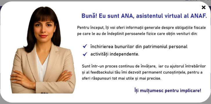 ANAF încurajează contribuabilii să interacționeze activ cu ANA și să transmită permanent feedback, contribuind astfel la perfecționarea continuă a sistemului. Fiecare întrebare adresată reprezintă o contribuție directă la construirea unui serviciu public digital mai performant.