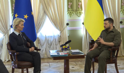 Preşedinta Comisiei Europene, Ursula von der Leyen, i-a promis vineri preşedintelui Volodimir Zelenski că instituţia sa va pregăti raportul privind candidatura Ucrainei la UE „în câteva săptămâni” după ce va primi răspunsul la chestionarul pe care i l-a înmânat.