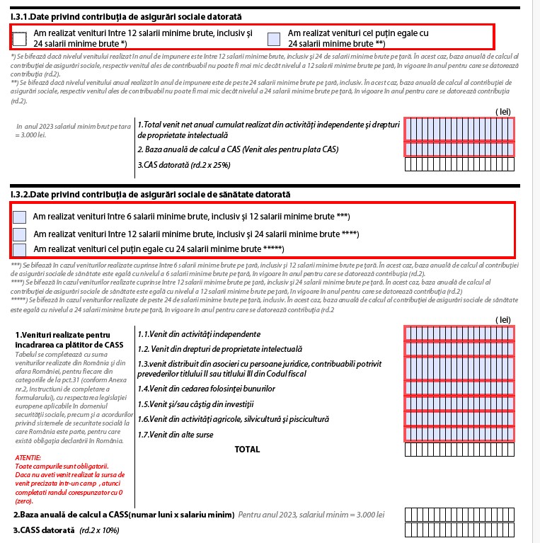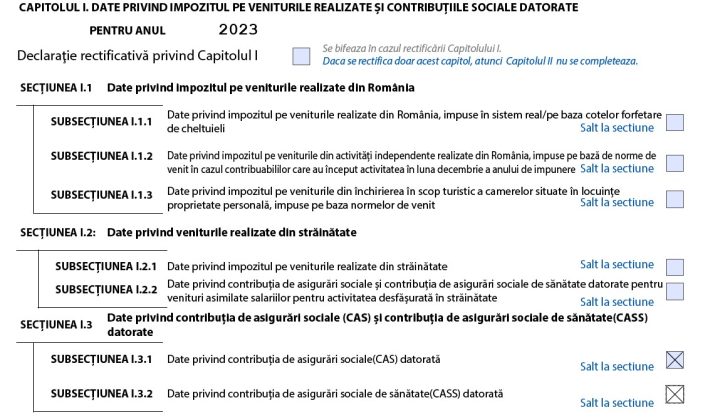 Aici veţi bifa secţiunea I.3 – date privind CAS şi CASS