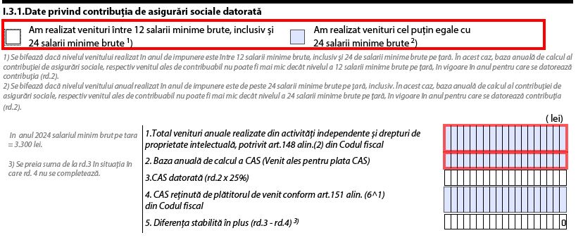 Bifaţi subsecţiunea I.3.1 date privind contribuția de asigurări sociale (CAS) datorată. Veţi fi direcţionat automat la această subsecţiune.