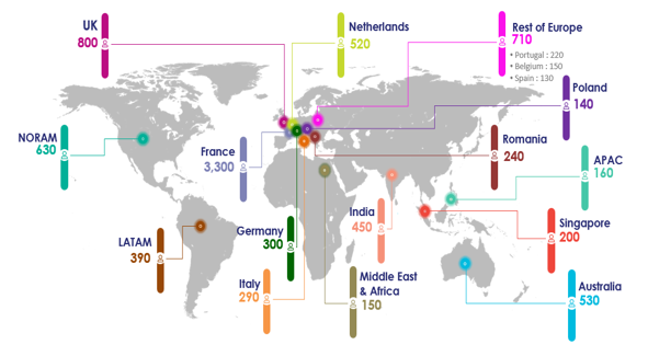 Pentru 2026, compania are în plan să angajeze aproximativ 3.300 de persoane în Franța, 800 în Regatul Unit, 630 în America de Nord, 530 în Australia, 520 în Țările de Jos, 450 în India, 300 în Germania, 240 în România, 200 în Singapore și 140 în Polonia.
