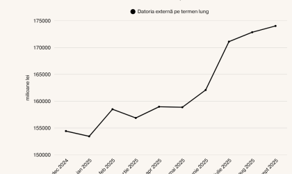 În al doilea, rând, așa cum s-a mai întâmplat și în ianuarie și în iulie 2025, situație anticipată de Economica, conform calendarului, octombrie și noiembrie ar trebui să fi venit cu ultimele două vârfuri de plată ale datoriei. Aceste plăți nu se vor face integral din împrumuturi, dar știm sigur că precedentul vârf de plată, adică luna iulie, a coincis cu cea mai mare creștere lunară a datoriei externe probabil din toate timpurile, un avans de 8 miliarde de euro sau 40% din tot creditul luat de România de la FMI, Banca Mondială și Comisia Europeană în criza din 2009.
