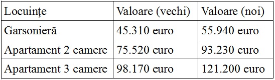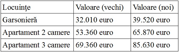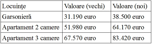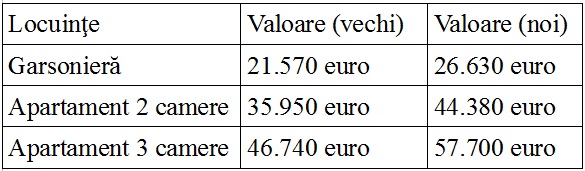 Pentru realizarea comparaţiei au fost luate în considerare garsonierele, apartamentele cu două şi trei camere, de la etajele intermediare (1-4), confort I sporit, din blocurile construite în perioadele 1978-1997 şi 2008 – prezent. În tabele se regăsesc valorile locuinţelor pentru 2014, din blocurile construite în perioadele alese pentru comparaţie.