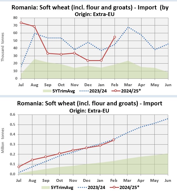 Dacă ne raportăm la întreg an comercial 2023/2024, România a fost al patrulea cel mai mare importator de grâu al UE, după Spania, Italia și Grecia, cu o cotă de 6% (ca acum, în primele opt luni), după importuri de 559.414 tone, dintr-un volum total cumpărat de statele membre de 9,6 milioane de tone. Atunci, grâul a venit din Republica Moldova (528.825 de tone), Serbia (29.200 de tone) și Ucraina (1.336 de tone).