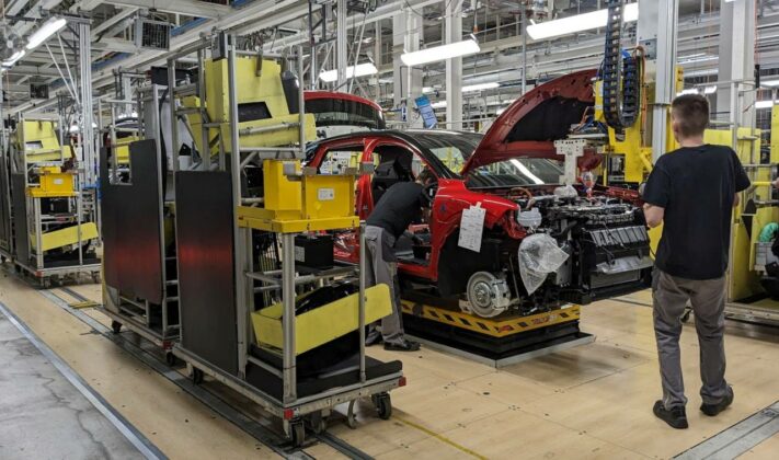 Cu o capacitate de 500 de mașini/zi, secția de montaj a uzinei din Douai nu diferă mult de cele din fabricile de mașini termice. În ciuda faptului că linia este cu totul nouă – a intrat în funcțiune în ianuarie 2022 – și flexibilă, putând transporta vehicule cu dimensiuni diferite, iar multe procese au fost automatizate, activitatea se desfășoară într-un ritm uzual. Doar cele 400 de AGV-uri (Automated Guided Vehicle) care transportă singure piese către operatori în funcție de cerințele acestora par din cu totul altă epocă.