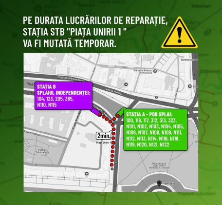 Pentru defășurarea lucrărilor, stația STB „Piața Unirii 1” nu va mai funcționa pe actualul amplasament, explică Nicorescu pe Facebook.