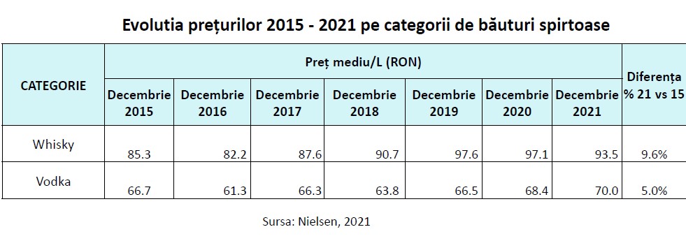 Din calculele producătorilor, o creștere suplimentară a accizelor cu aproximativ 15% (inflația anuală prognozată pe anul 2022) de la 1 ianuarie 2023 ar determina o creștere a prețului la raft al băuturilor spirtoase cu concentrație alcoolică de 40% grade cu minimum 4.5 lei/litru. Aceasta în contextul în care producătorii au aplicat deja o scumpire la raft de aproximativ 5-10%.
