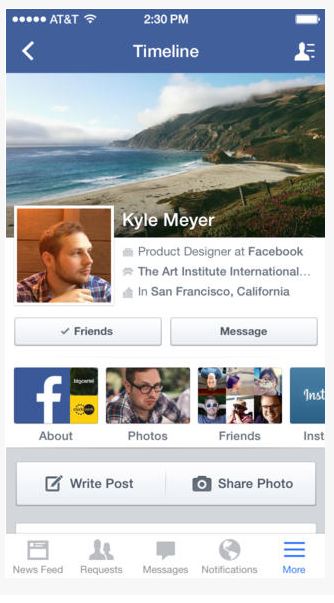 Iată mai jos un screenshot cu noul layout al Timeline-ului afisat de Facebook pe telefoanele Apple.
