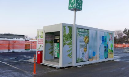 • În parcarea magazinului, clienții vor găsi un automat de tip self-service, unde pot recicla ambalaje în schimbul voucherelor de extra-reducere. Pot colecta aici trei tipuri de ambalaje: PET-uri (cu volum de până la 3 litri), sticlă și doze de aluminiu (cu volum de până la 1 litru).