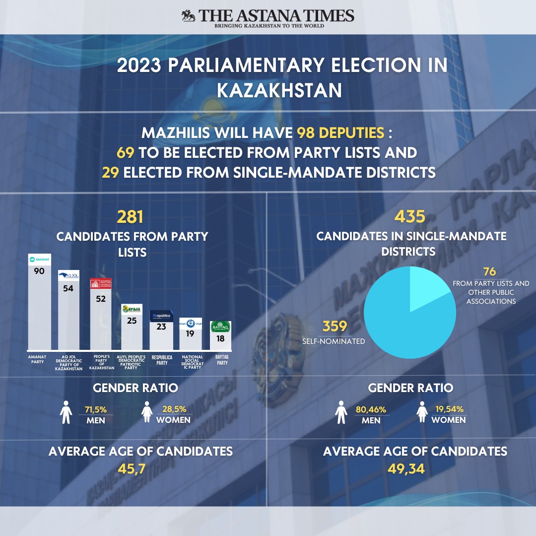 În prezent, în Kazahstan sunt înregistrate șapte partide, oferind electoratului o varietate de opțiuni politice. Participarea la alegeri competitive va întări sistemul multipartid prin creșterea pluralismului și influența politicii de opoziție, un obiectiv la care țara noastră a lucrat în ultimii ani. Important este că pragul pentru intrarea partidelor în Mazhilis a fost redus de la șapte la cinci procente, facilitând intrarea în parlament a partidelor de opoziție, care pot juca un rol important în creșterea responsabilității guvernului.