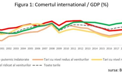 Tot în Figura 1 se observă că, în termeni relativi, țările sărace sau puternic îndatorate au cunoscut un declin mult mai puternic al activității de comerț exterior, situându-se în permanență după anul 2012 la un nivel inferior în raport cu țările caracterizate de un nivel ridicat al veniturilor (conform clasificării și datelor Băncii Mondiale).