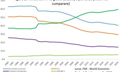 Totuși, o categorie aparte, formată din țări aflate între extrema celor cu nivel de dezvoltare economică foarte redus și extrema țărilor foarte dezvoltate, respectiv economiile emergente și în curs de dezvoltare, a cunoscut o creștere semnificativă a puterii economice în termeni relativi. Figura 2 ilustrează faptul că economiile emergente și în curs de dezvoltare și-au sporit semnificativ contribuția la PIB-ul global pe parcursul ultimilor 35 de ani, în detrimentul economiilor dezvoltate, sau al unor blocuri economice avansate precum G7 sau Uniunea Europeană.