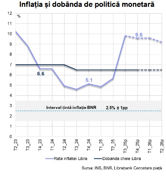 Evaluarea făcută de Libra Bank vine după ce BNR a păstrat ieri, conform așteptărilor, dobânda de politică monetară la nivelul de 6,50% și, de asemenea, dobânzile la facilitatea de depozit și credit la 5,50% și respectiv 7,50%. Ratele de constituire a rezervelor minime obligatorii au rămas nemodificate.