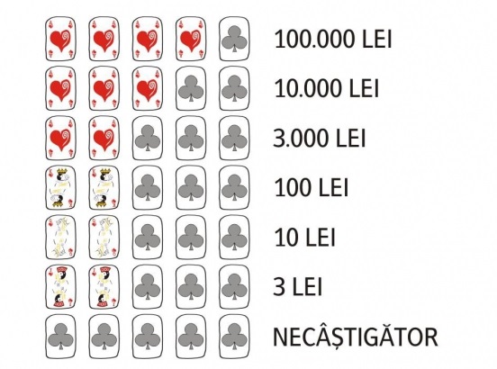 Preţul unui loz „FULL CASINO” este de 3 lei, iar premiile sunt în valoare de 100, 3.000 şi 10.000 de lei, premiul cel mai mare fiind în valoare de 100.000 de lei.