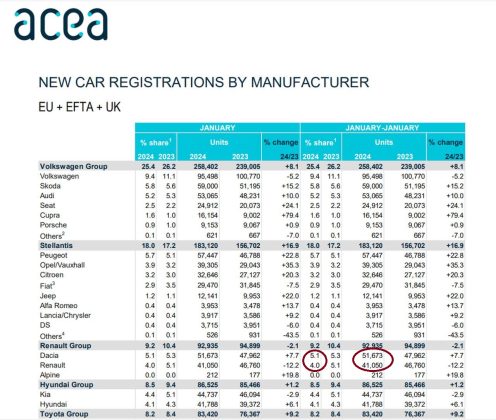 Desigur, vorbim doar despre înmatriculările dintr-o singură lună, iar lucrurile se pot schimba radical până la finalul trimestrului și, mai ales, al anului. Cu toate acestea nu trebuie uitat că noua generație Dacia Duster încă nu a fost livrată clienților, iar un facelift al modelului electric Dacia Spring va fi lansată peste doar câteva zile la expoziția auto de la Geneva. De cealaltă parte șeful grupului francez, Luca de Meo a menționat că Renault va avea în acest an nu mai puțin de șapte lansări de produse noi. Primul dintre acestea va fi electricul Renault 5 așteptat tot la Geneva Motor Show 2024.