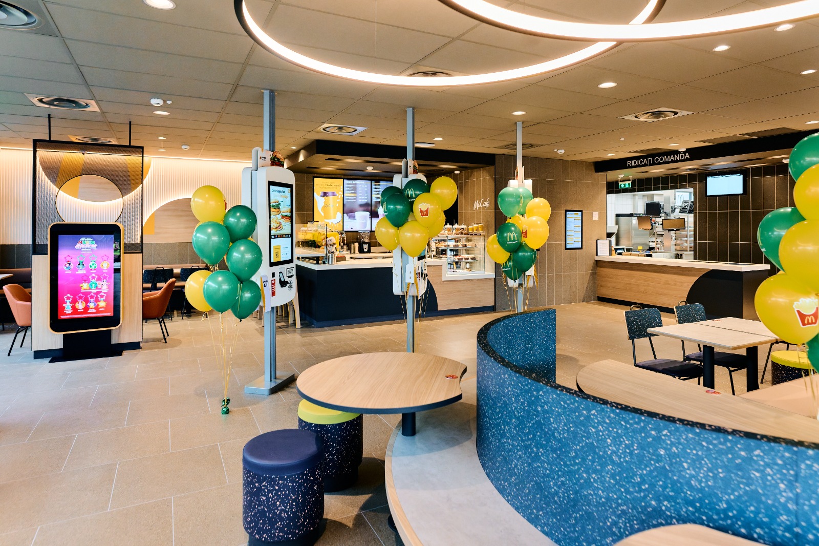 Clienții au la dispoziție kioskuri digitale pentru comandă și plată contactless, menuboard-uri digitale, precum și linia Drive-Thru, pentru o experiență rapidă. În plus, spațiul include o zonă dedicată comenzilor de delivery, pentru gestionarea eficientă a fluxului de livrări, în special în orele de vârf.