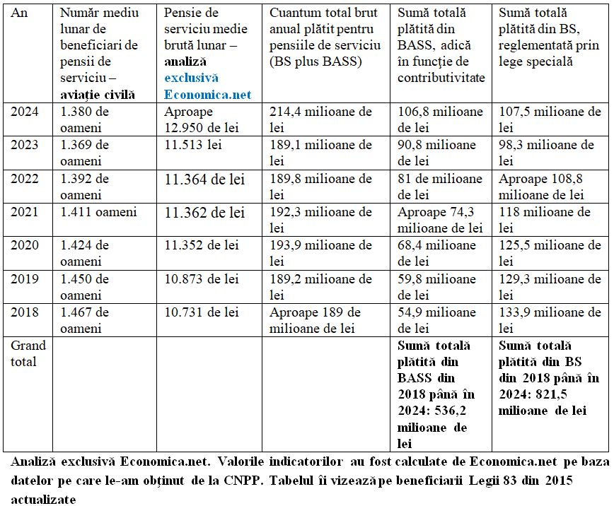 Civililor care încasează pensie de serviciu li s-ar fi cuvenit strict în funcţie de contributivitate pensii în valoare totală de 2,1 miliarde de lei din anul 2018 până în 2024 inclusiv. Aceasta e suma plătită din bugetul asigurărilor sociale (BASS), în funcţie de cât au contribuit pe parcursul vieţii profesionale, arată analiza Economica.net.
