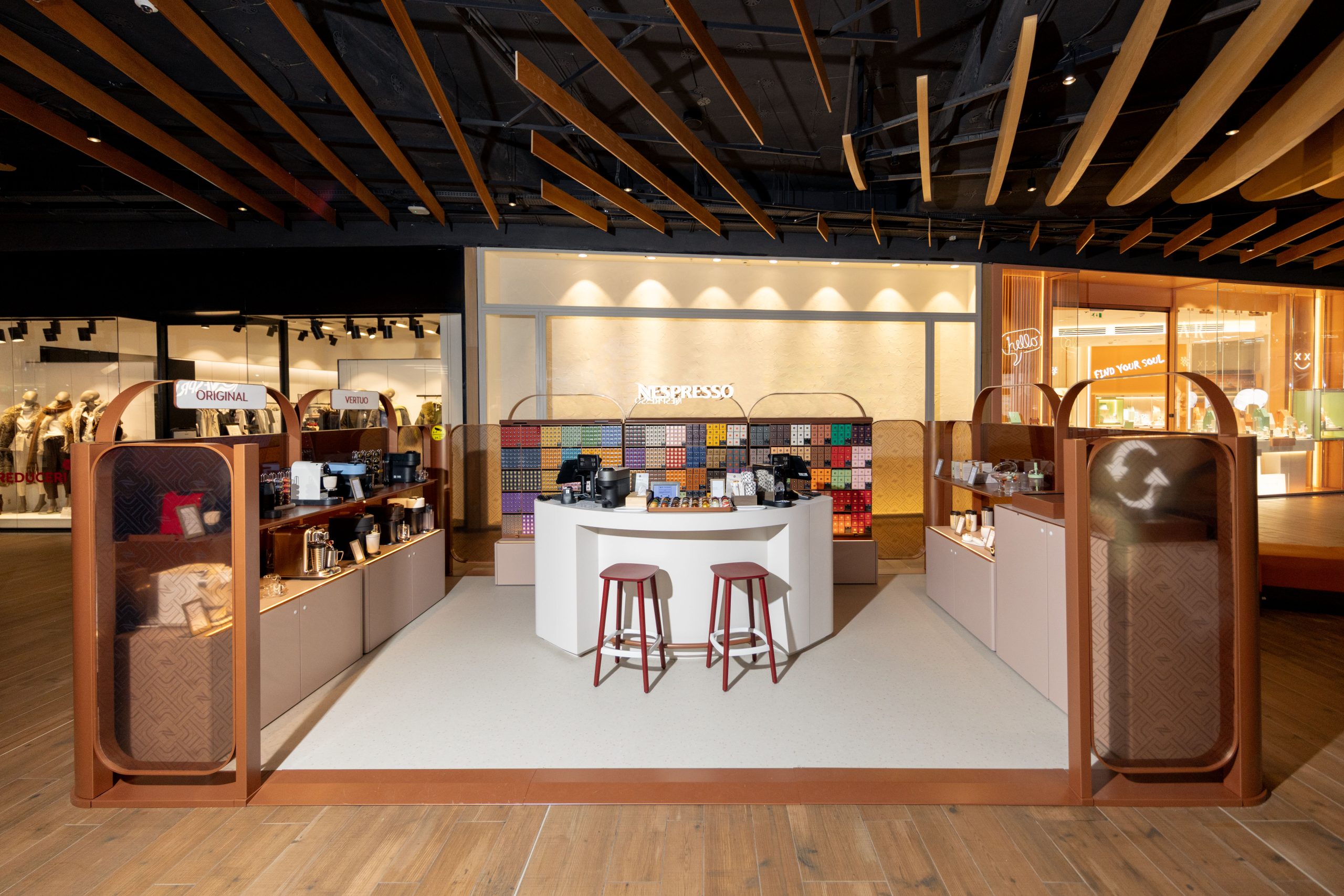 Locația este prezentată sub un nou concept, tip pavilion, gândită ca un spațiu deschis, care invită la explorare și interacțiune. Amplasat la parter, în zona intrării dinspre parc, în spatele Info Desk-ului, pavilionul se remarcă printr-un design aerisit, cu vizibilitate din toate direcțiile, integrat natural în fluxul centrului comercial. Conceptul pune accent pe experiență și pe dialogul cu iubitorii de cafea, printr-un coffee wall extins, care evidențiază diversitatea sortimentelor Nespresso, și o zonă dedicată espressoarelor, concepută pentru a prezenta cele mai noi inovații ale brandului. Vizitatorii se pot bucura de o experiență completă, care îmbină expertiza în cafea cu serviciile personalizate, prin: