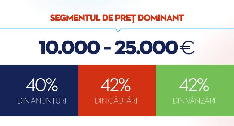 La capitolul vânzări, segmentul 10.000 – 25.000 euro domină cu 42% din tranzacții, urmat de categoria sub 10.000 euro cu 24% din vânzări.